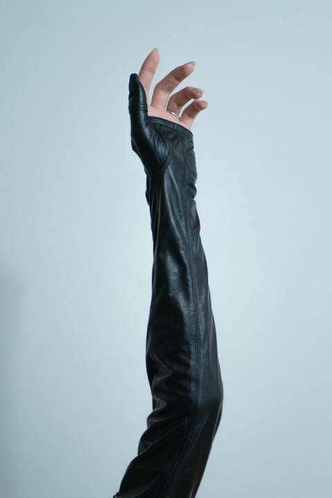 Gloves in a semi aniline Japanese plonge leather; skived to 0.5mm thickness. A soft and sturdy leather from the same breed of cattle as Kobe beef. Sam Browne closures along the outer side seam. Double rivet mounted equestrian buckle belts.
